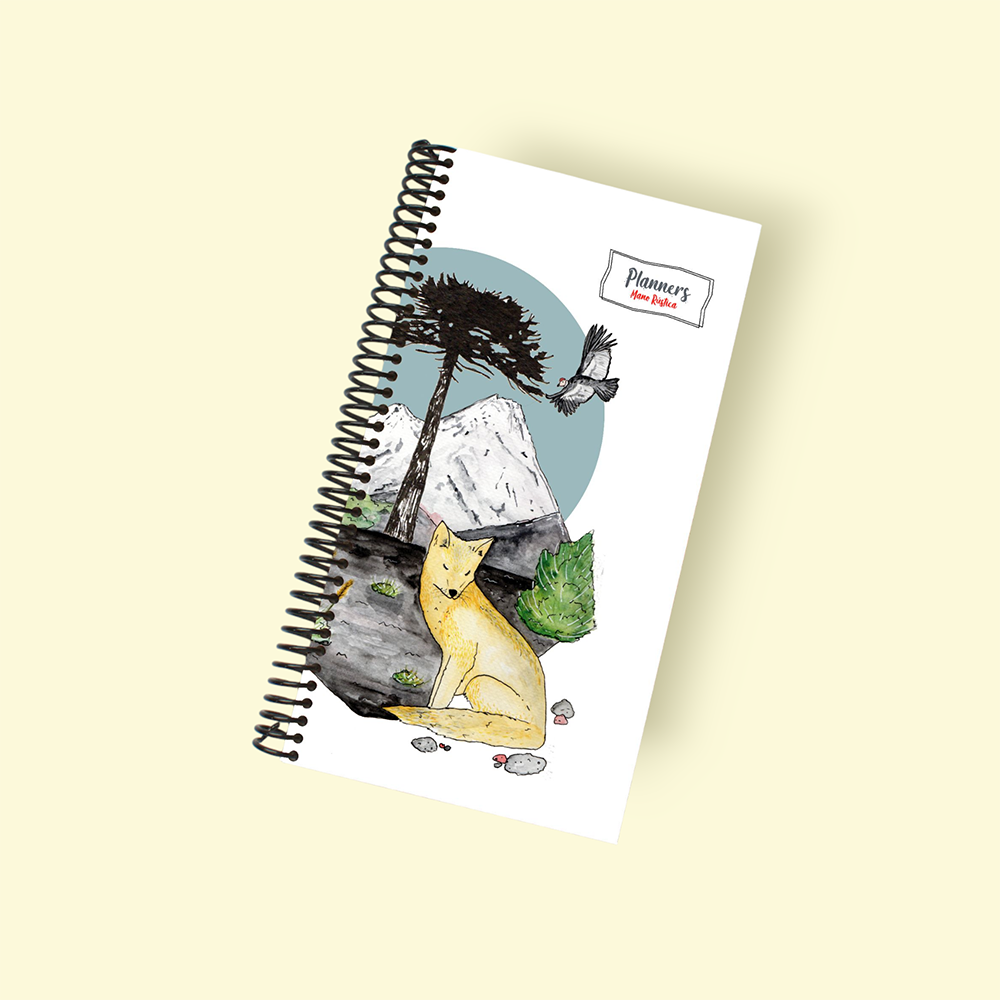 Planner 2025 Tapa Dura con Ilustraciones en Acuarela – Flora y Fauna Chilena (22×18 cm) – Corazón Fungi